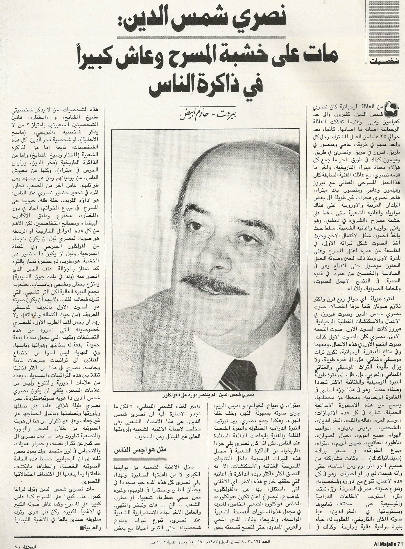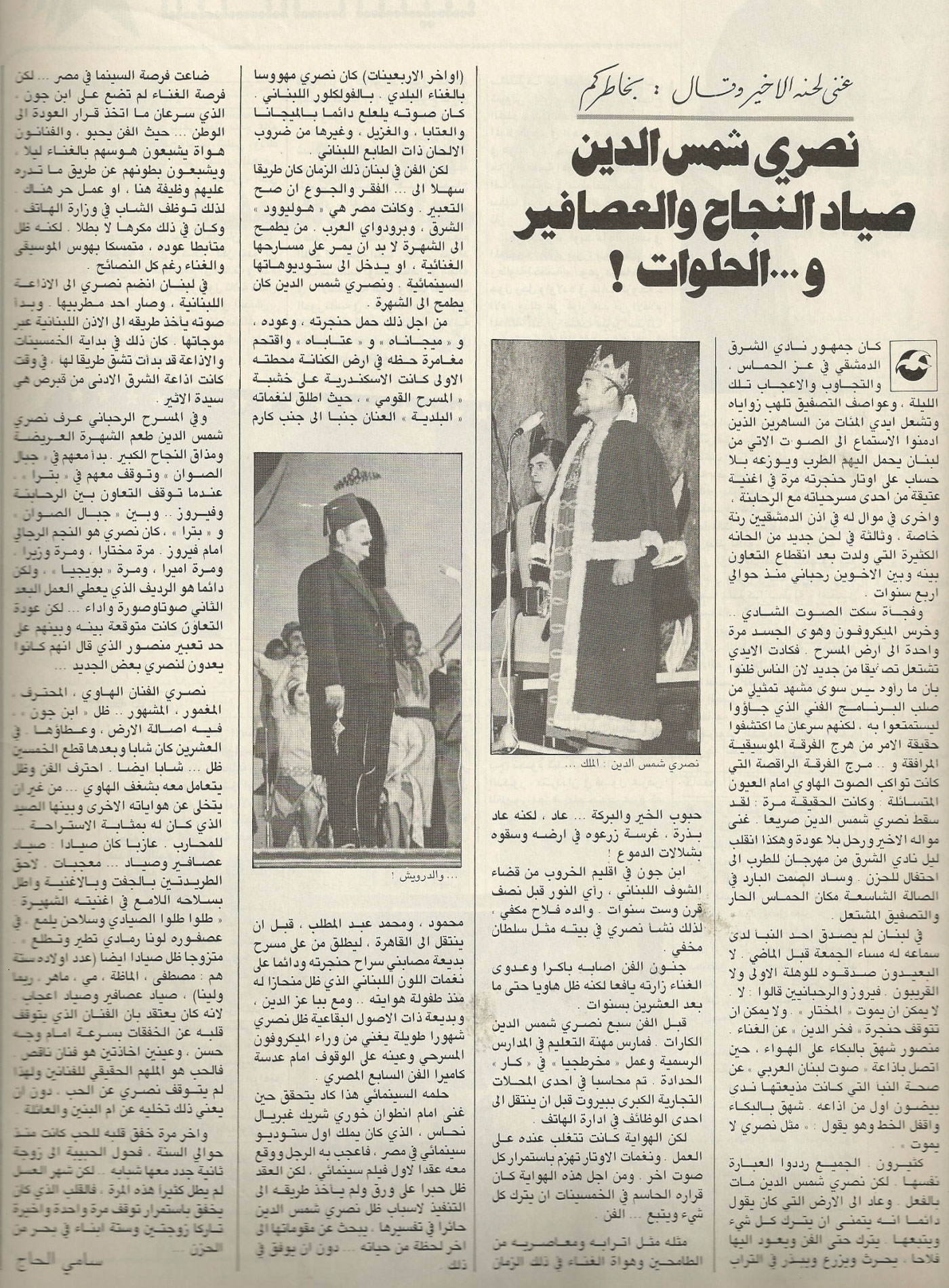 لم يرهبه وجود فيروز، لم يرعبه وجود وديع الصافي حتى أصبح هو الآخر من المتفردين الذين يرهب جانبهم ويحسب لأعمالهم ألف حساب.ذلك هو: نصري شمس الدين