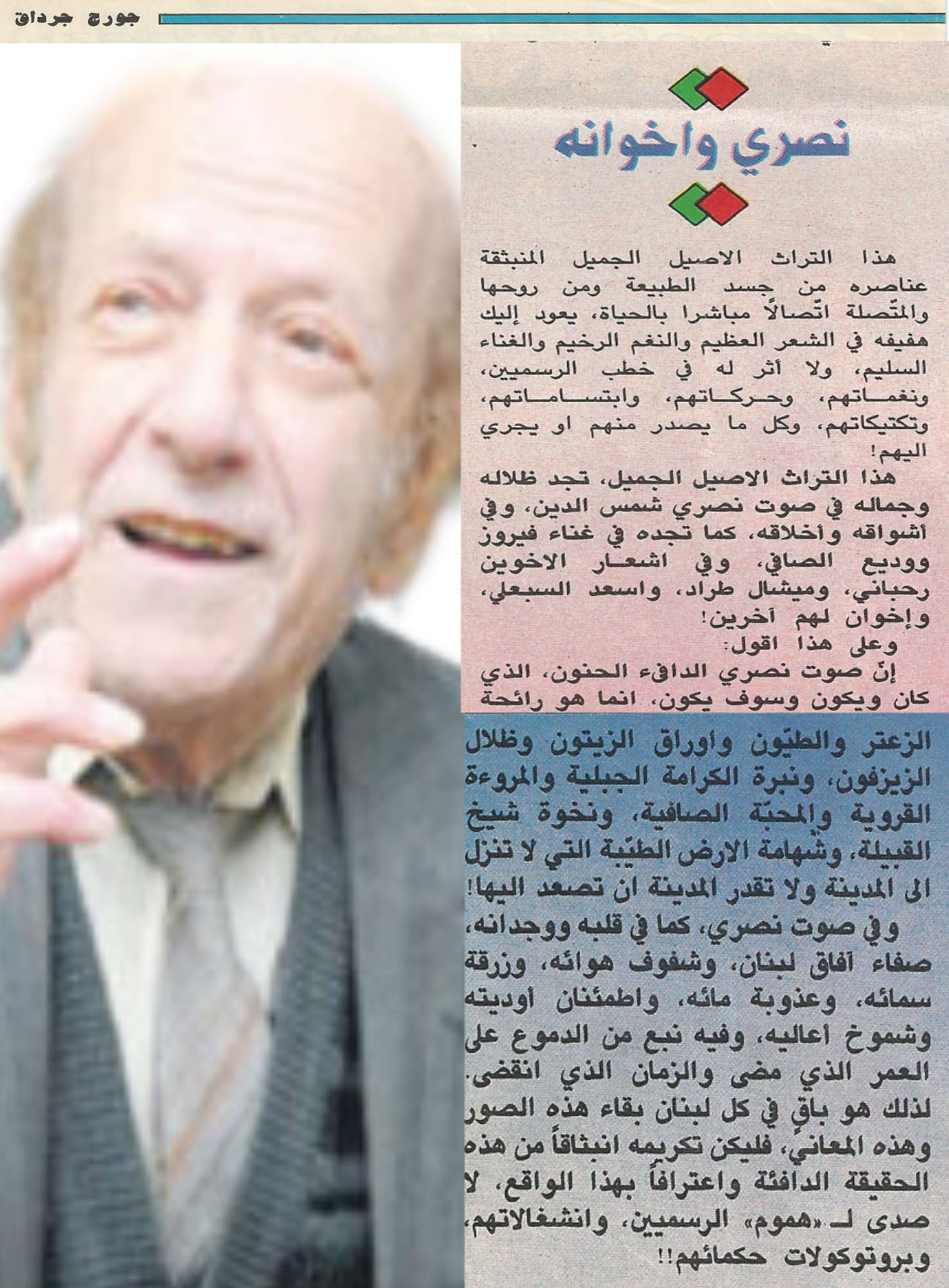 إذا وقفت فيروز وعن يمينها وديع الصافي وعن يسارها نصري شمس الدين، يتهيأ لك وكأنك تنظر إلى خوفو وخفرع ومنقرع.